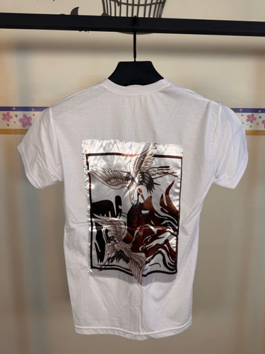 تیشرت سیمرغ استین کوتاه سفید چاپ دوختی