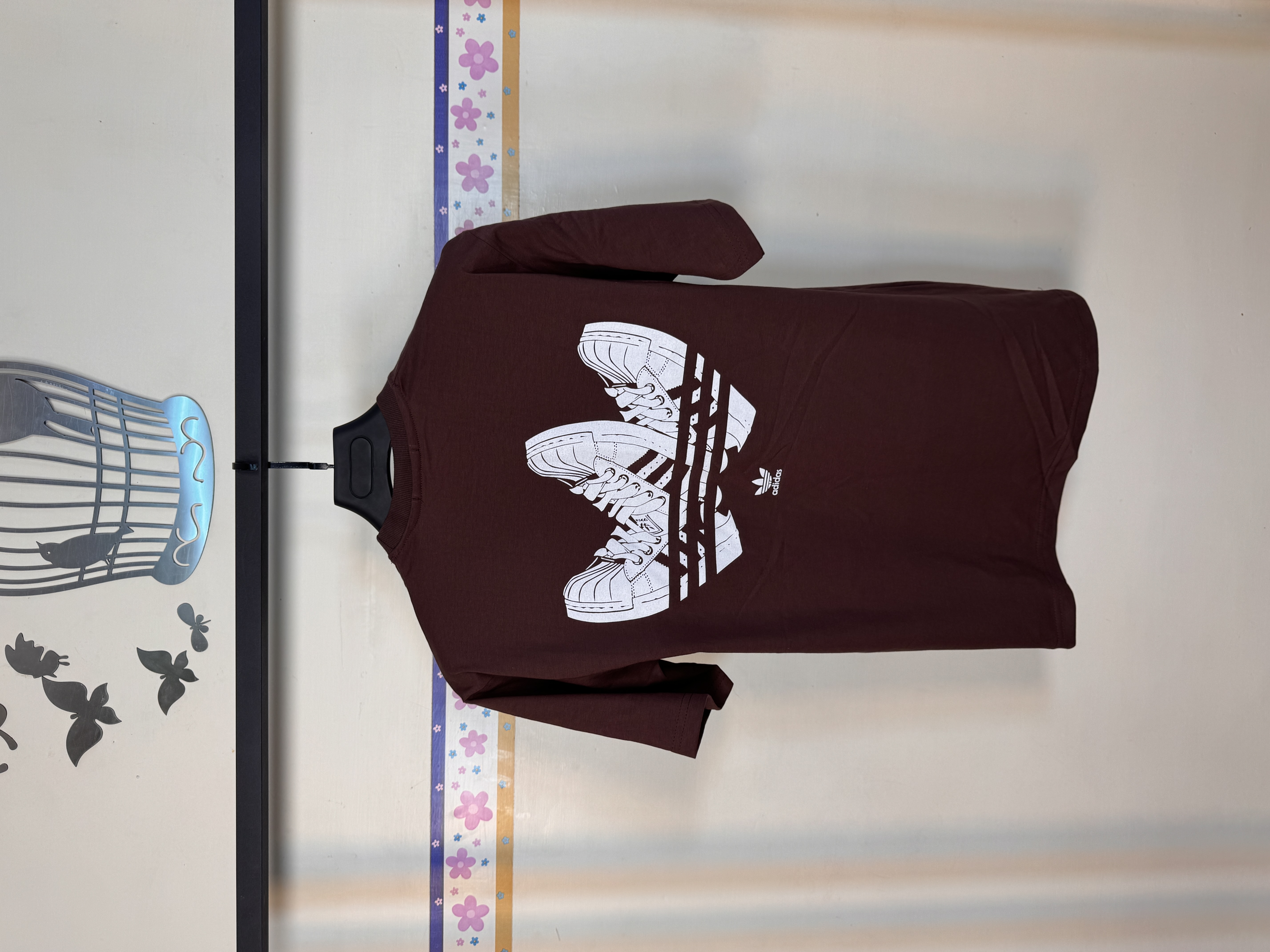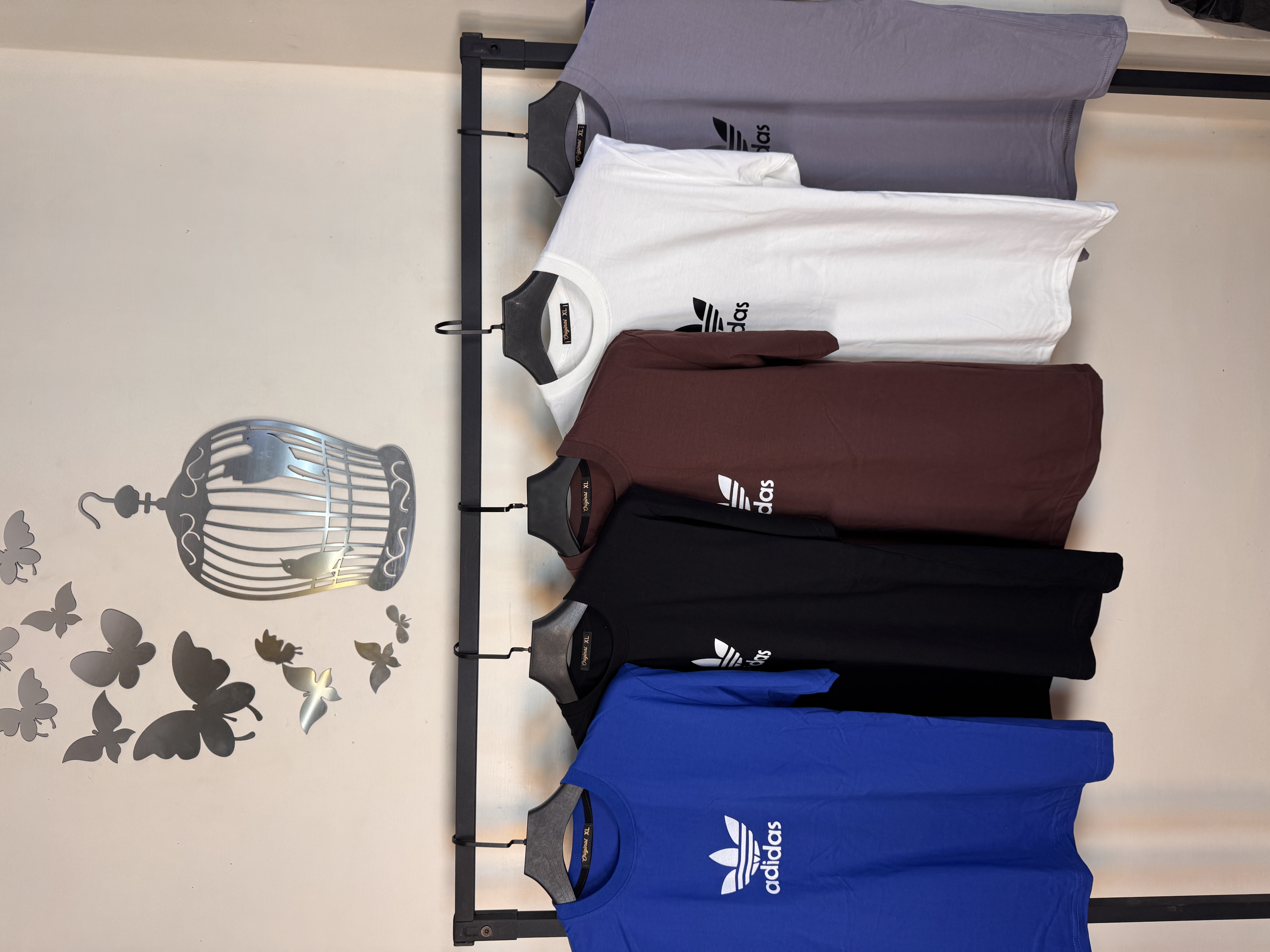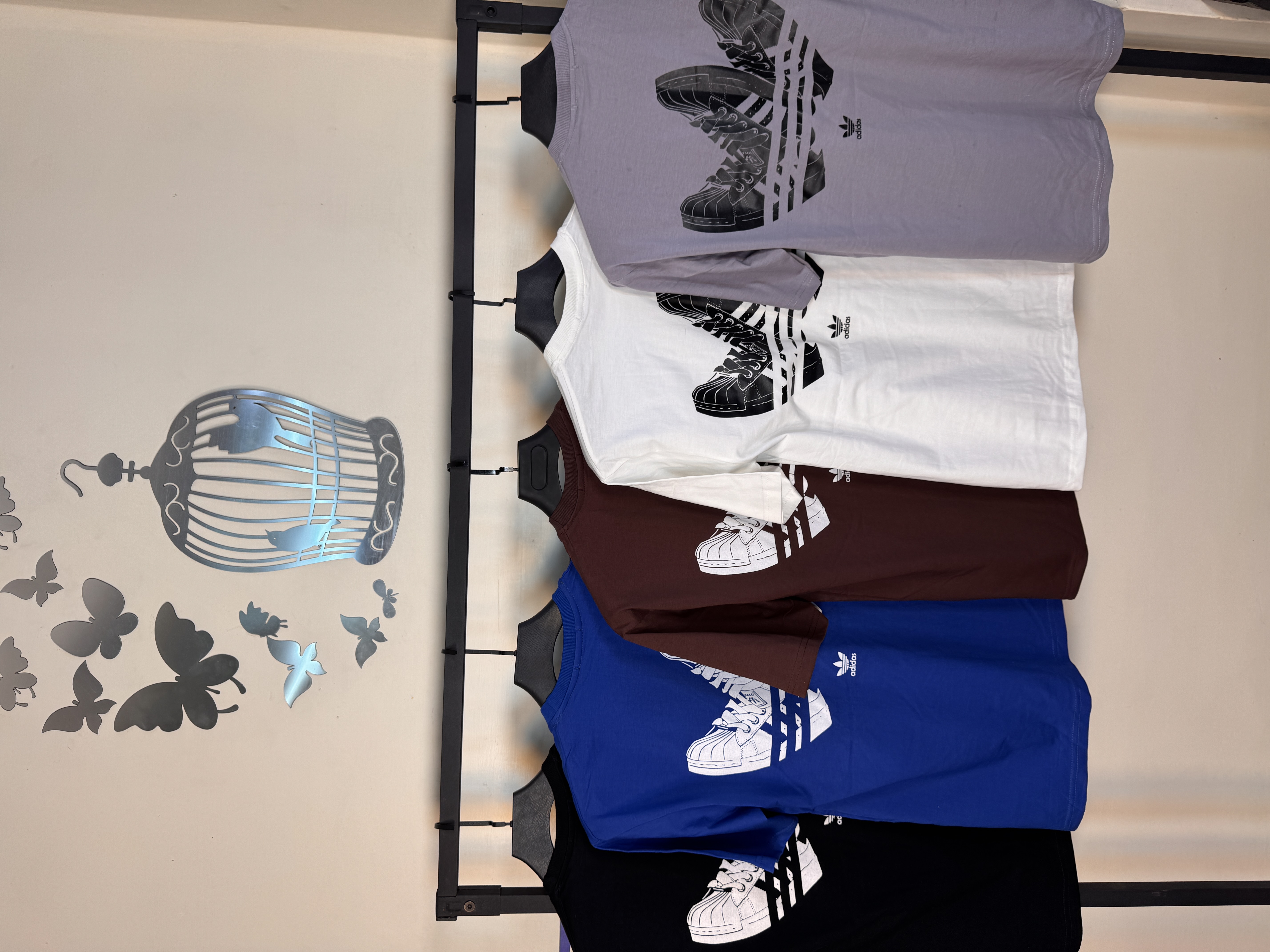 تیشرت آدیداس پشت و پیش چاپ در ۵ رنگ جذاب آبی سفید مشکی قهوهای خاکستری سایزبندی XL,2XL,3XL جنس پارچه پنپه با ضمانت چاپ زول با کیفیت بدون جنسیت مناسب روزمره،دانشگاه،مهمونی گان کشی شده و دوخت مرتب
