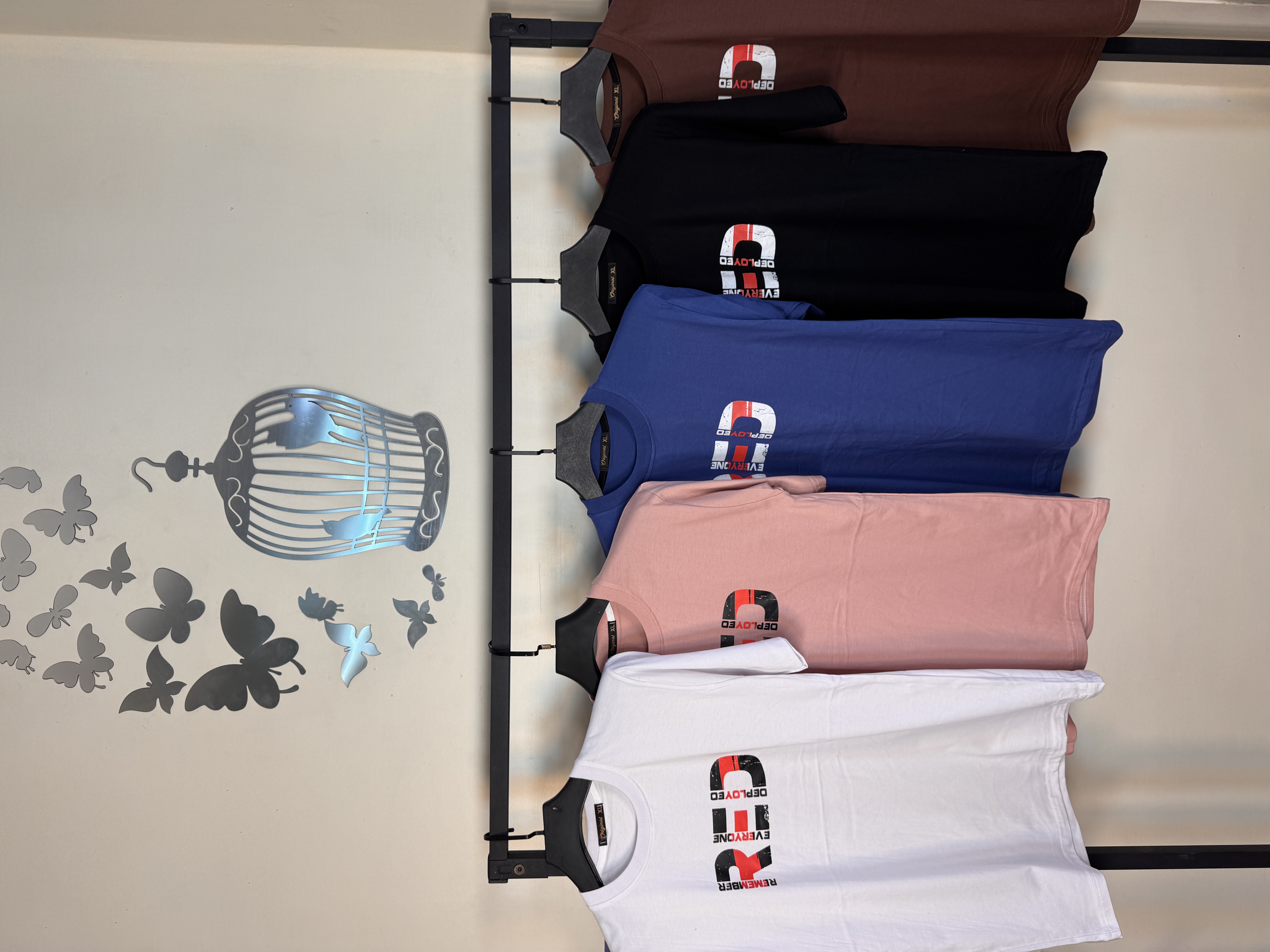 تیشرتRED پیش چاپ بدون جنسیت در ۵ رنگ جذاب آبی سفید مشکی قهوه ای صورتی تیره جنس پارچه پنپه با ضمانت چاپ زول با کیفیت مناسب روزمره مهمونی دانشگاه گان کشی شده و دوخت مرتب